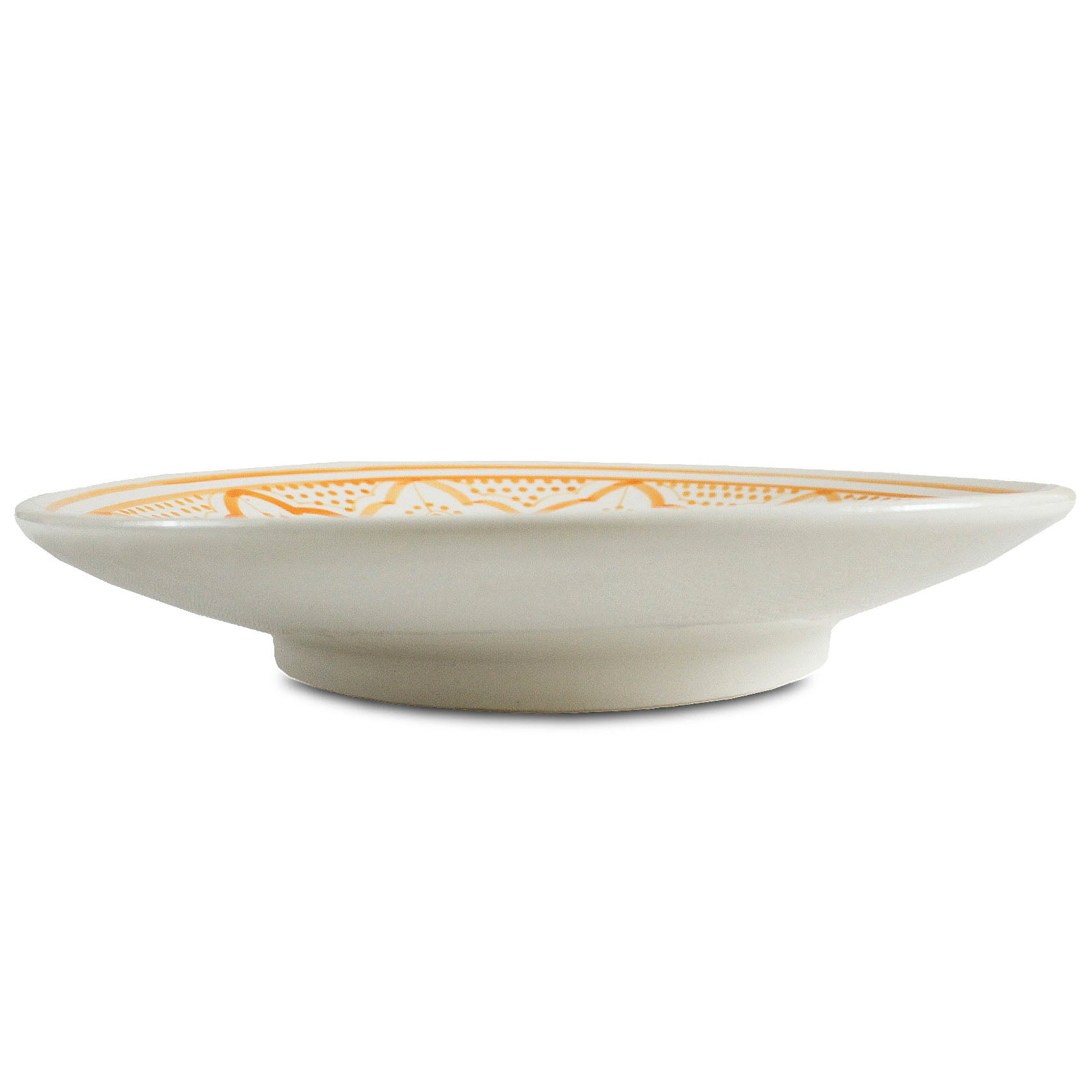 This Zwak-style plate celebrates the richness of Safi's craftsmanship, renowned for its ceramic expertise. Hand-cast in white clay, it features traditional motifs meticulously painted in beige, evoking the warm tones of Moroccan nomadic landscapes. Ideal for decorating or serving, this piece harmoniously blends tradition and modernity.