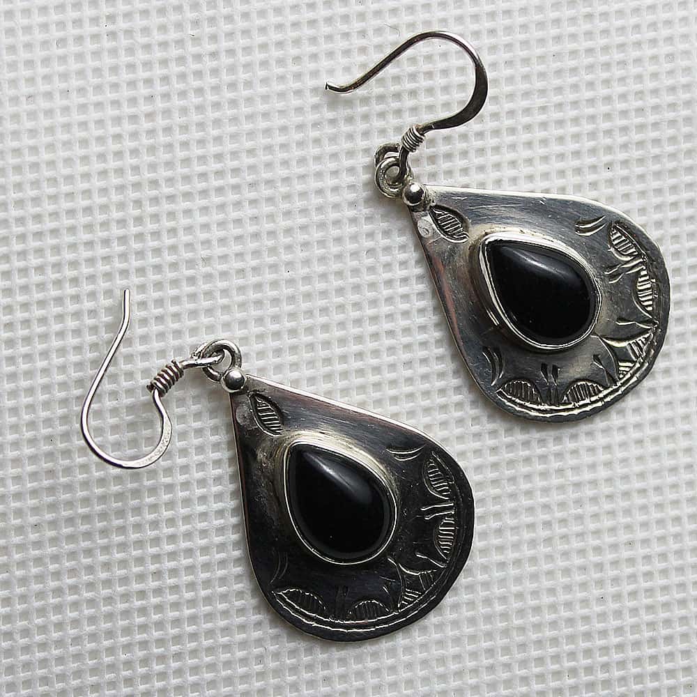 Berber style earrings with black stone in the center, 100% handmade in Tiznit.