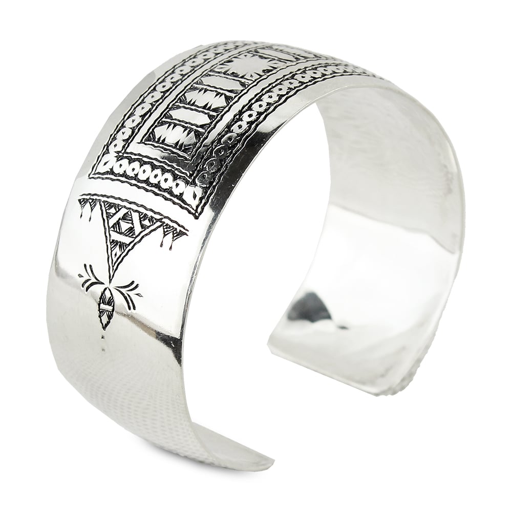 This Moroccan silver handcrafted bracelet is a real treasure. Handcrafted by talented artisans, it features a traditional design with intricate patterns and refined details. Its finesse and elegance make it a unique piece of jewelry that will add a touch of exoticism to your outfit.