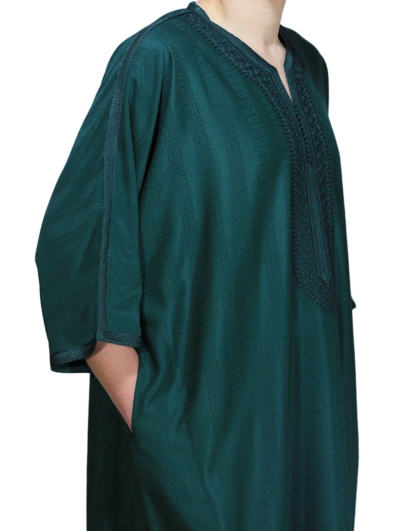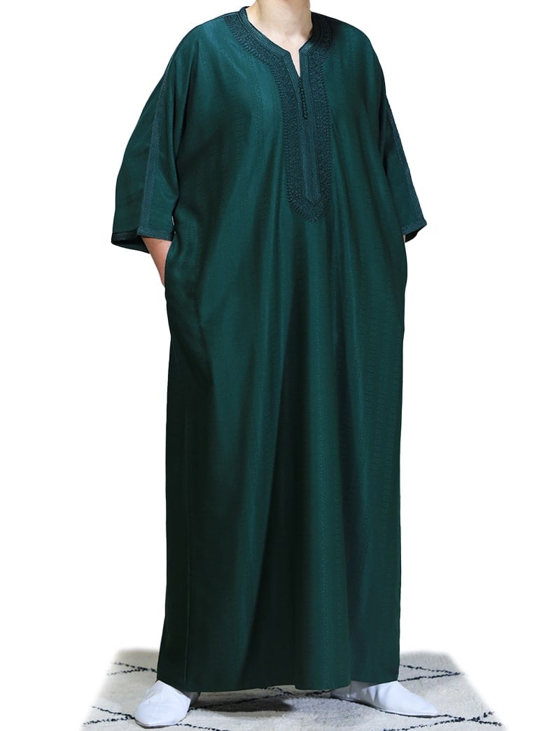 Discover the green Moroccan Atlas Oasis Gandoura, a traditional outfit combining elegance and comfort. Carefully crafted, this Moroccan dress features beautiful patterns and colors that reflect the authenticity of Moroccan culture. Immerse yourself in a world of beauty and refinement with this Gandoura inspired by the verdant oasis of the Atlas Mountains.