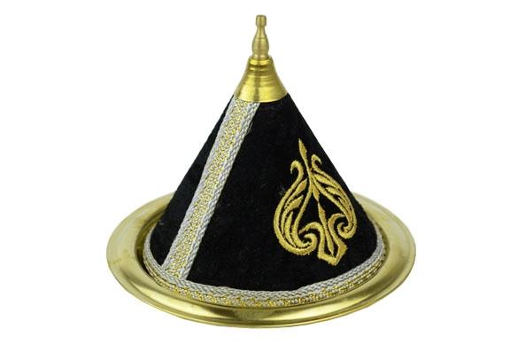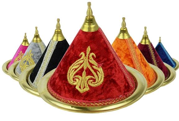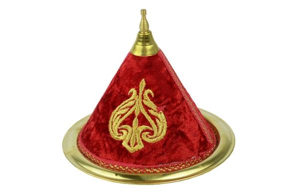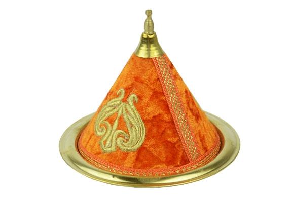 Small handmade candy box in fabric and copper, with pretty gold embroidery.