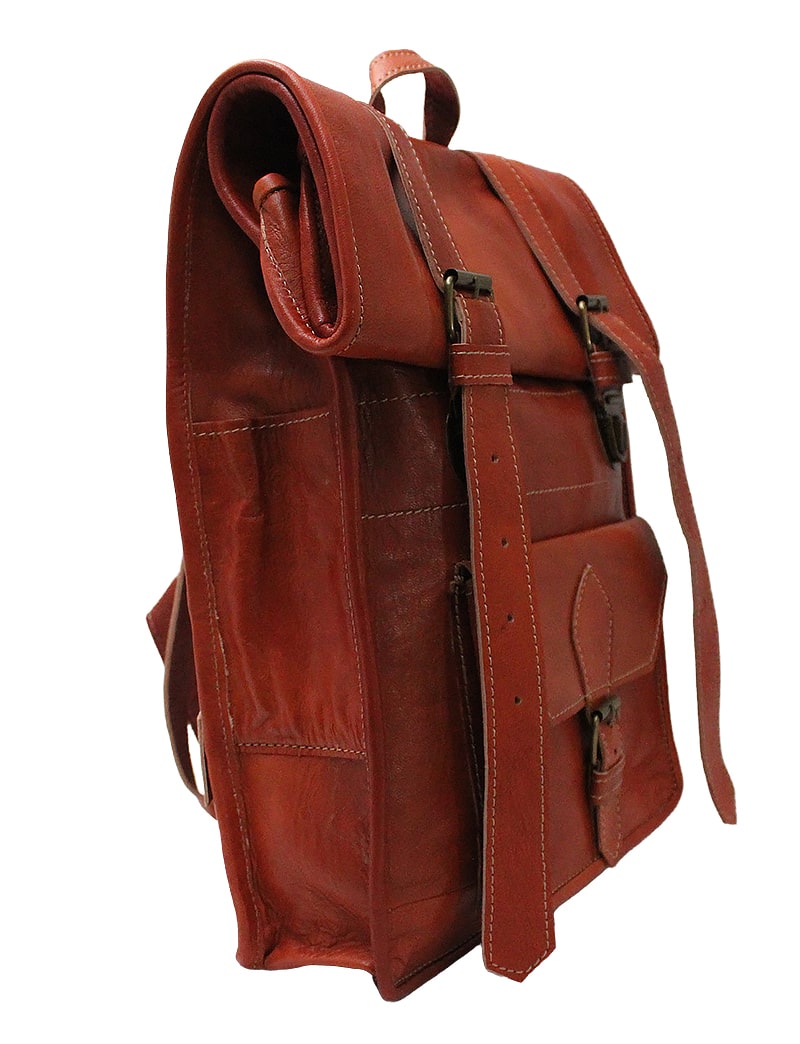 Genuine brown leather backpack for men and women. High quality leather with a vintage and elegant design.