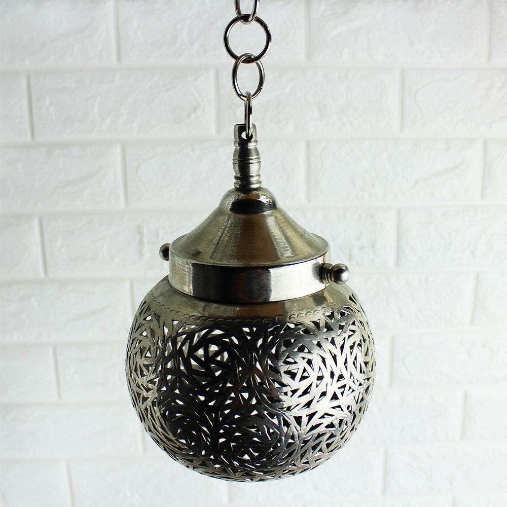 Moroccan nickel pendant light fixture handmade in Fez.